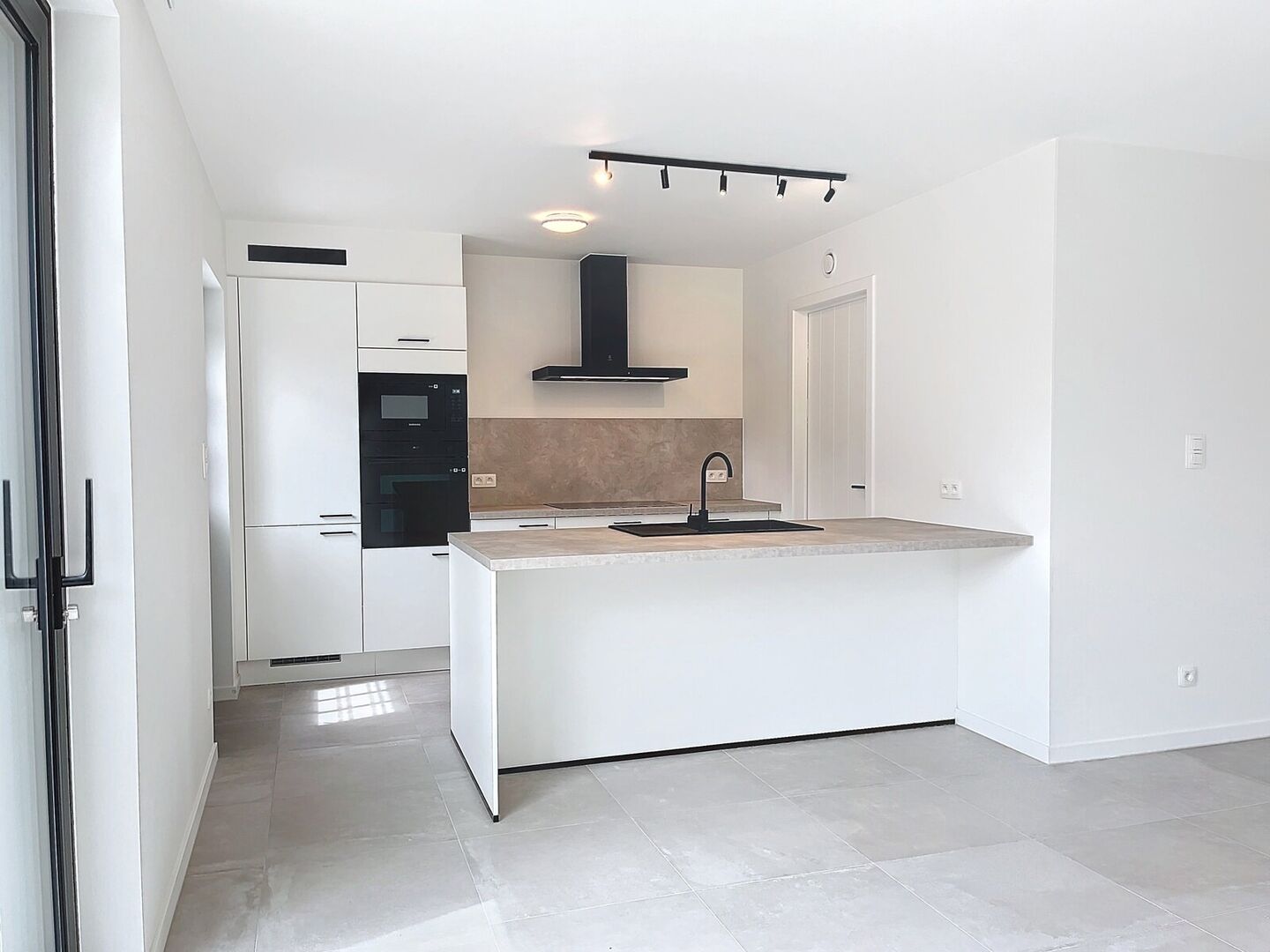 Gelijkvloers: inkomhal (± 6,2 m²), toilet (± 2,1 m²) met wastafel en spiegel, leefruimte (± 36,9 m²) met open keuken (± 9,7 m²) uitgerust met onder- en bovenkasten, kookeiland, vaatwasser, enkele spoelbak, oven, microgolf, inductie kookplaat, en koelkast, berging (± 7 m²) met uitgietbak, terras en tuin.