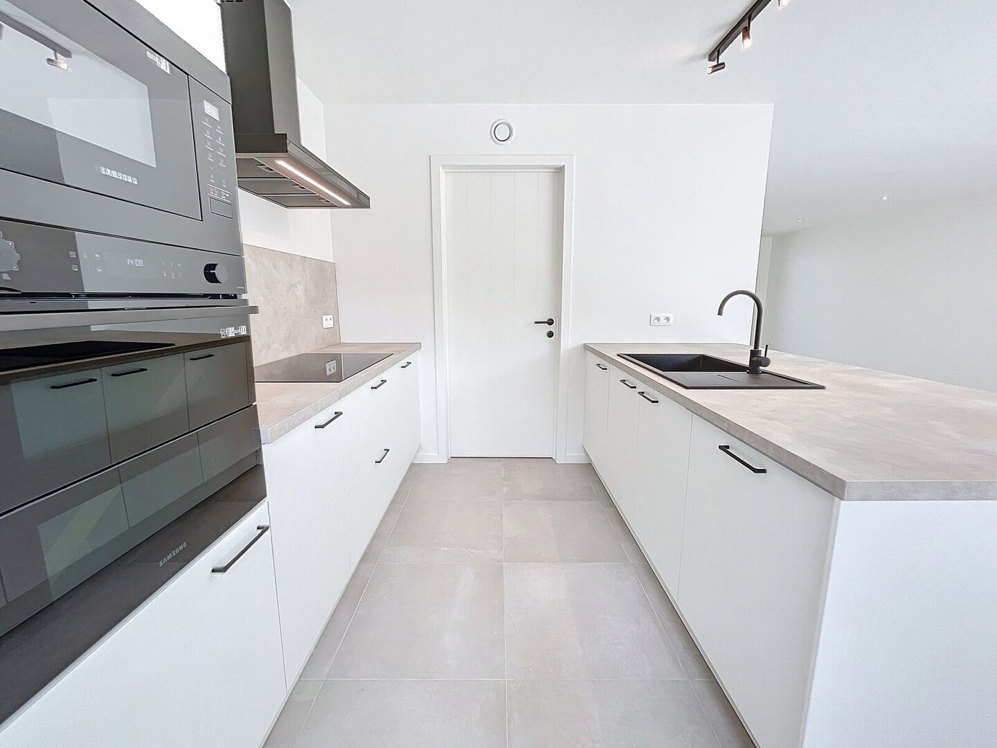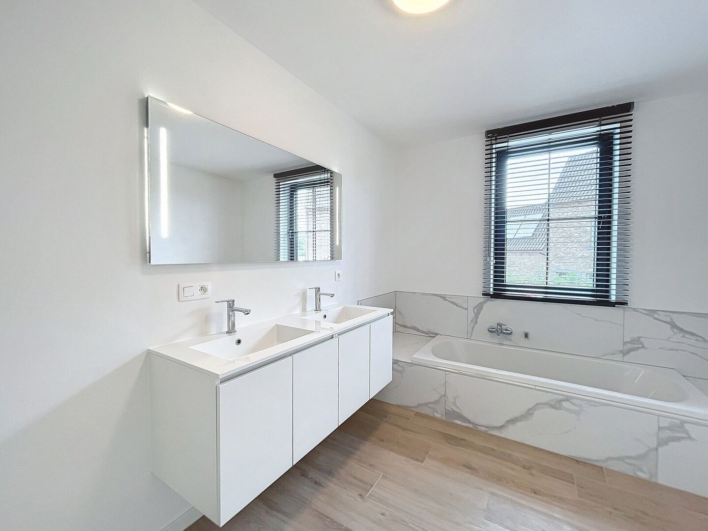 De grote leefruimte biedt veel lichtinval en is voorzien van een volledig uitgeruste keuken met een aanpalende berging/wasplaats. Vanuit de leefruimte heb je zicht op het terras en de met groen omzoomde tuin. Op de 1e verdieping vind je drie comfortabele slaapkamers en een luxueus afgewerkte badkamer. Verder vind je op de 2e verdieping een riante open ruimte die als vierde slaapkamer of als polyvalente ruimte benut kan worden.