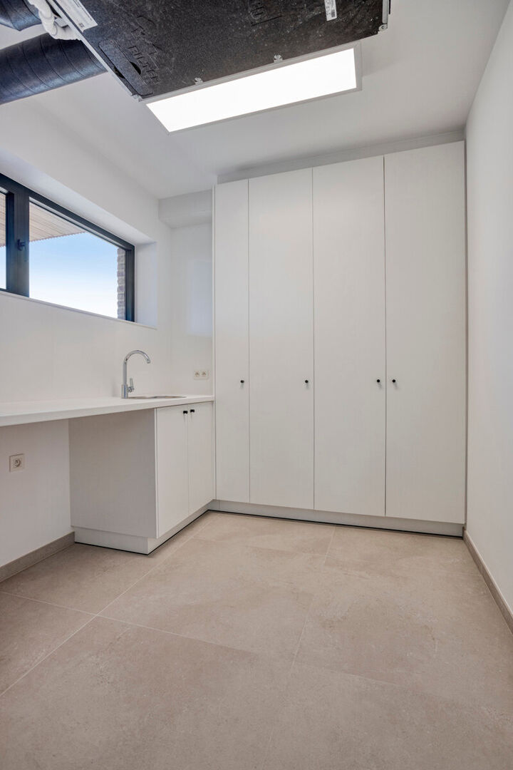 De woning ademt kwaliteit en woongemak. Zo is er aan meer dan voldoende bergruimte gedacht in de keuken, wasplaats, toilet en badkamer. De aanwezigheid van directe en indirecte verlichting zorgt ervoor dat je altijd de juiste sfeer kan zetten. Ook buitenverlichting is alvast aanwezig. Zowel op het gelijkvloers als op de eerste verdieping geniet je van airco. Je kan de elektrische wagen onder de carport opladen. Verder geniet je hier van een alarmsysteem en domotica.