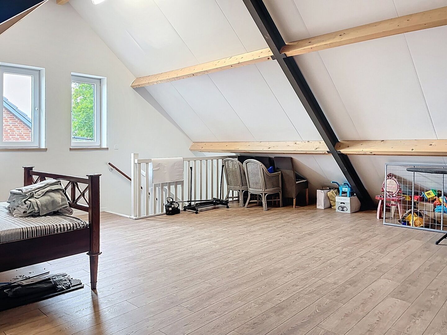 2e verdieping: Open ruimte (± 37,1 m²) met laminaatvloer.