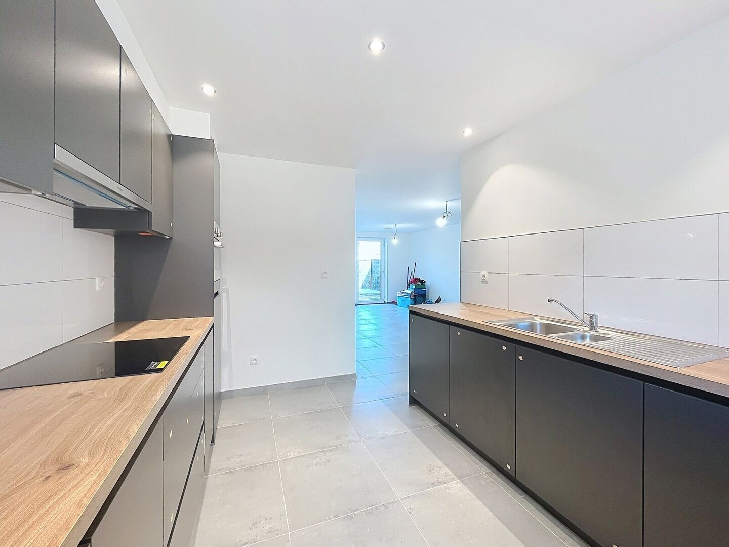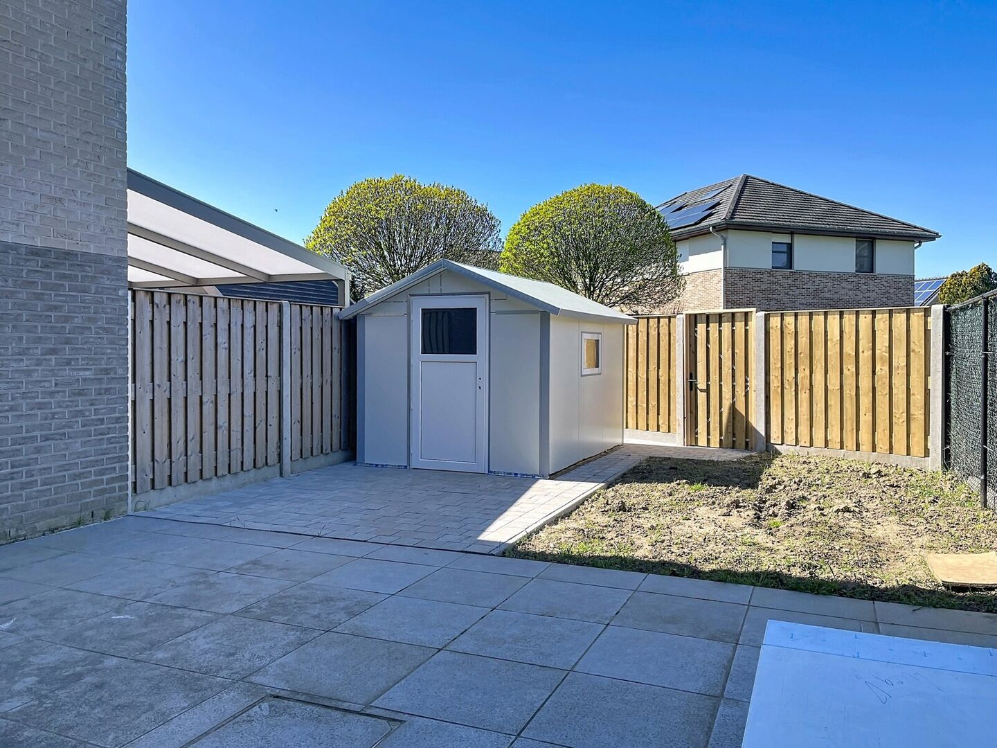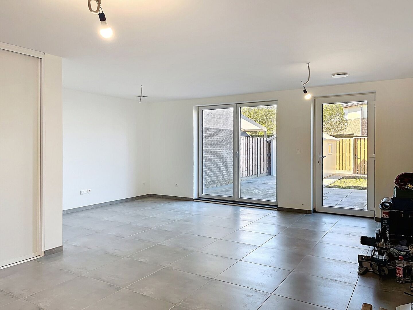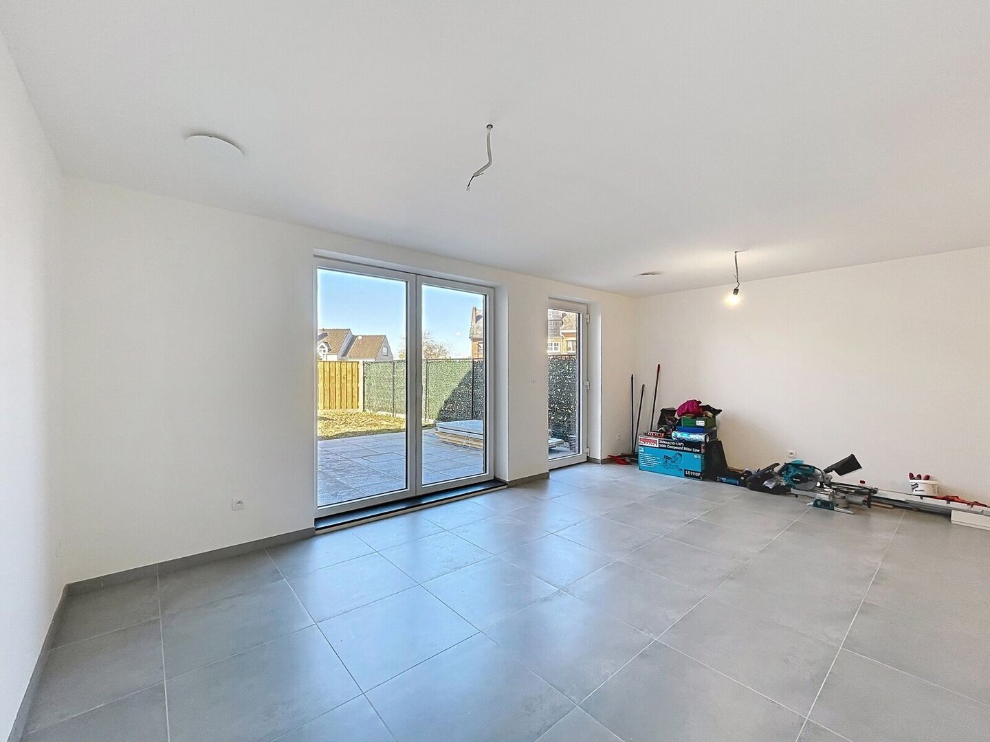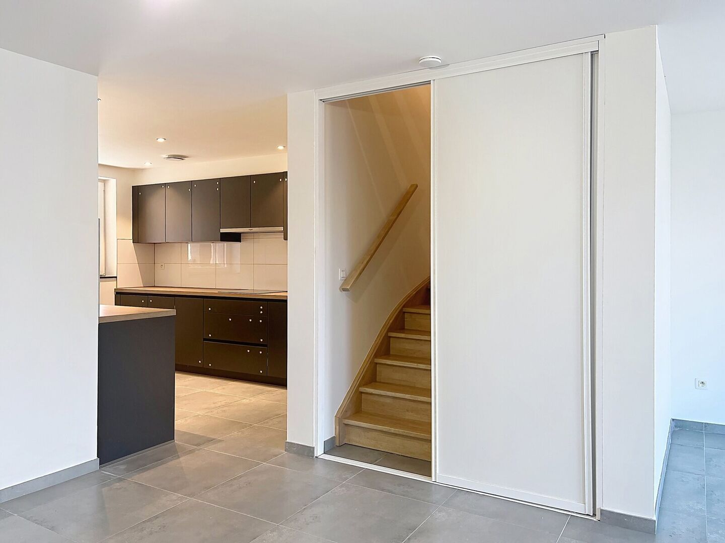 Het gelijkvloers biedt alle ruimte om gezellig samen te zijn dankzij de royale leefruimte met open keuken. Vanuit de leefruimte geniet je van zicht op en toegang tot de knusse tuin met terras. De tuin is eveneens toegankelijk via de achterkant van het perceel. Verder bevinden zich op het gelijkvloers nog het gastentoilet en de inkom met handige ingebouwde kast. Onder de overkapping aan voorzijde van de woning bevinden zich 2 parkeerplaatsen.