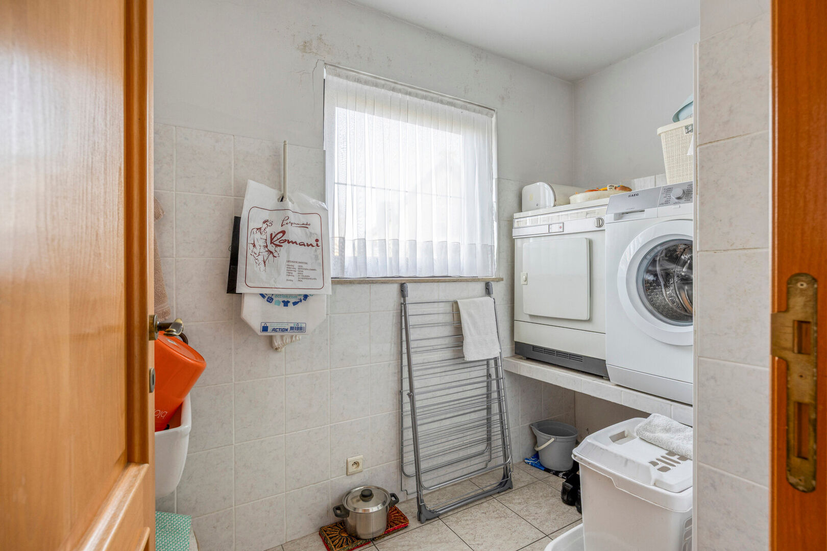 Momenteel is de woning volledig gelijkvloers ingericht en beschikt over 3 slaapkamers. De zolder is toegankelijk en biedt nog heel wat mogelijkheden om verder af te werken en in te richten naar wens. De keuken geeft uit op de tuin en heeft aansluitend een handige bergruimte en wasruimte.