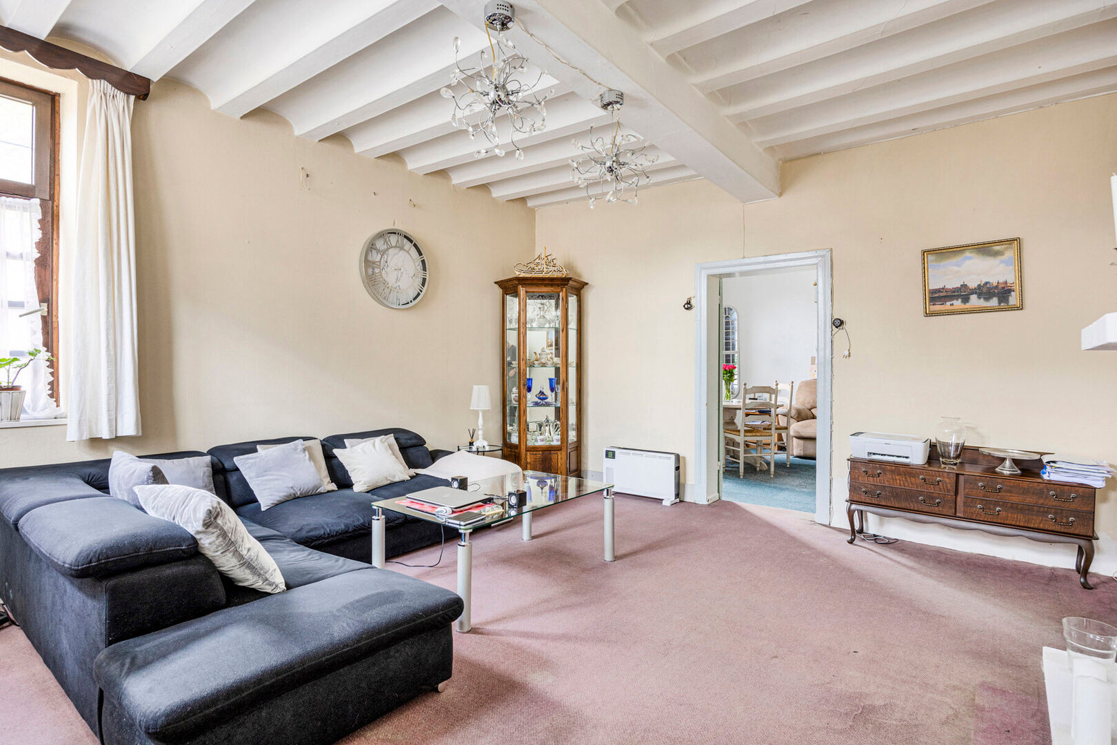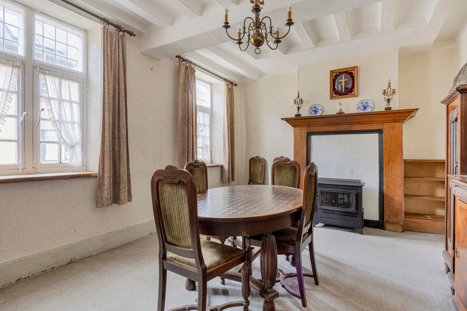 De woning ademt geschiedenis. De uitvoering in witgekalkte baksteen met houten kozijnen en kenmerkende gepikte plint nemen je mee terug naar de 18e eeuw. Ook tal van andere elementen in deze woning doen het verleden spreken. Zo zijn er onder meer het bepleisterde plafond met zichtbare moer- en kinderbalken, het chronogram boven de voordeur, de originele kalkstenen vloertegels in de hal en de deur met oculus links in de gevel.