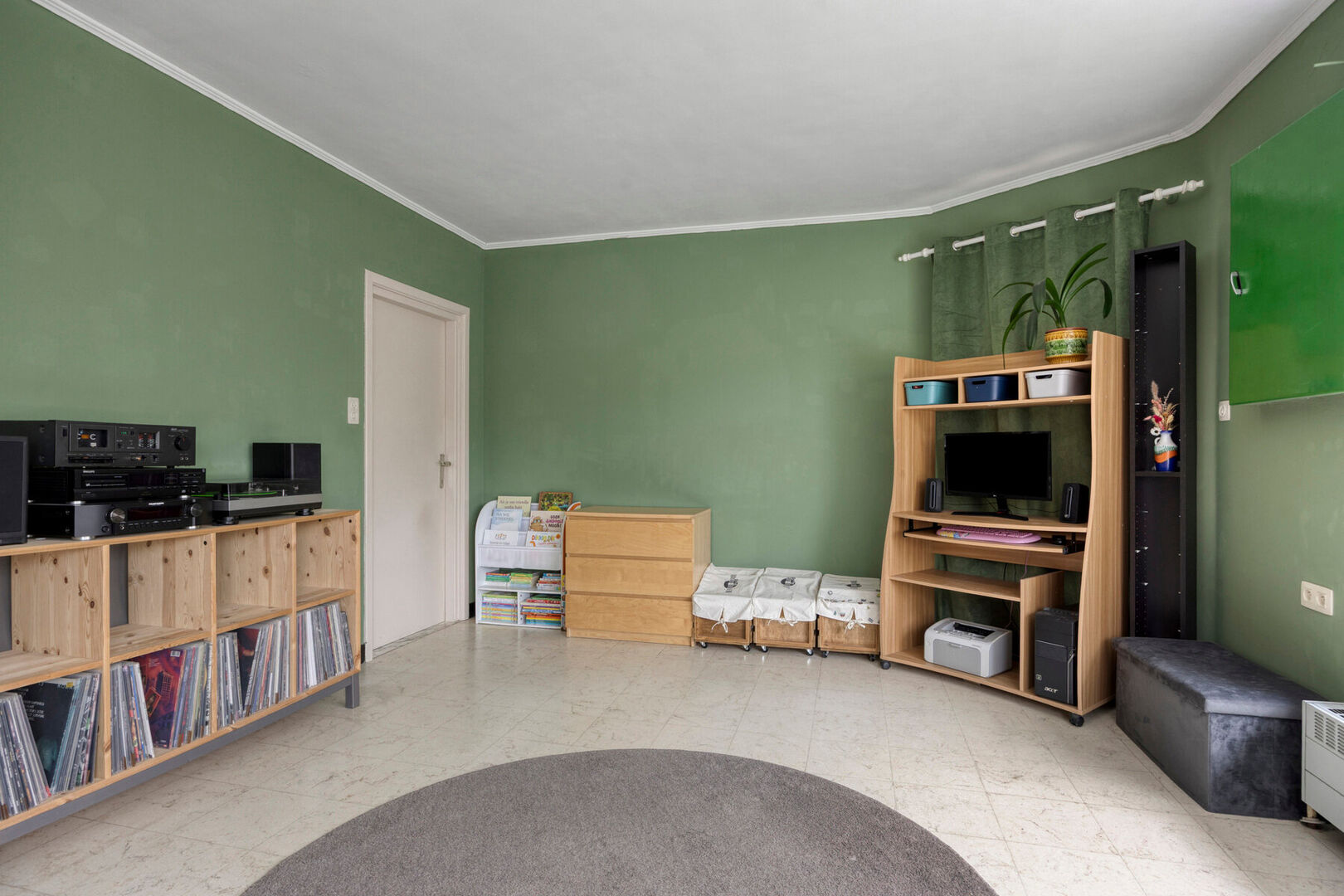 Gelijkvloers: inkomhal met toegang tot de kelder en verdieping, woonkamer, volledig uitgeruste keuken en gastentoilet, hobbyruimte (perfect bruikbaar als kantoor of extra slaapkamer)