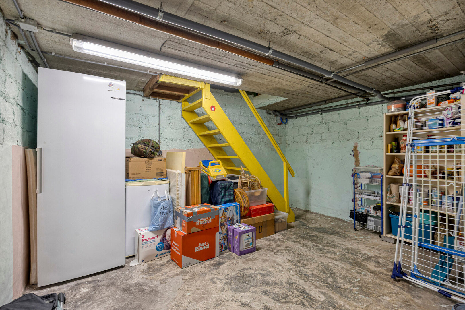 De meeste ramen zijn vervaardigd uit PVC met dubbel glas en voorzien van rolluiken. De volledig omheinde tuin biedt privacy en is praktisch ingericht. Via de tuin is de inpandige garage bereikbaar, gelegen in de kelder van de woning.