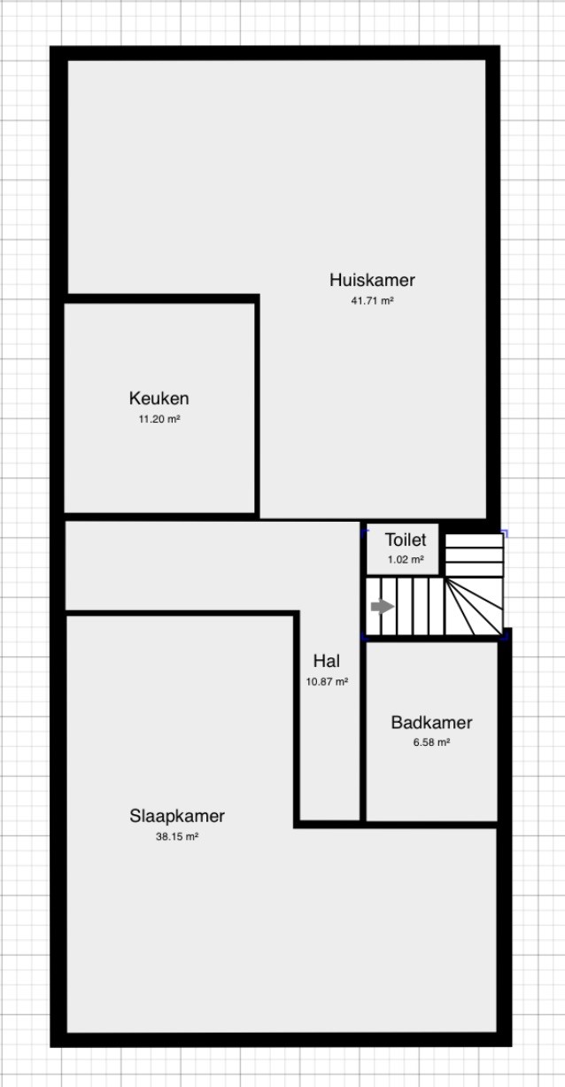 Gelijkvloers: inkomhal (± 10,9 m²), woonkamer (± 41,7 m²) met ingebouwde cassette, keuken (± 11,2 m²) met onder- en bovenkasten, oven, spoelbak, elektrische kookplaat en koelkast, toilet (± 1 m²) met wastafel, badkamer (± 6,6 m²) met ligbad, douche, wasmeubel en spiegel en hoofdslaapkamer (± 38,2 m²).
