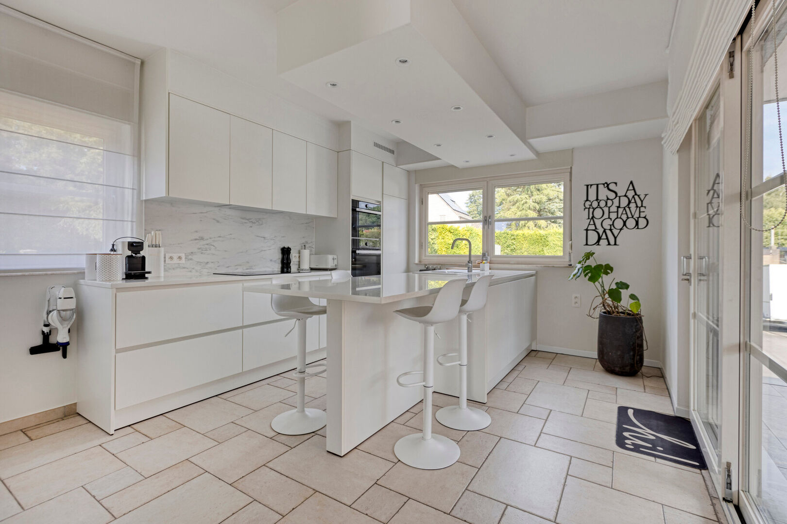 Bij het betreden van de woning kom je terecht in de inkomhal dat voorzien is van een apart gastentoilet. Van hieruit stap je door naar de leefruimte in het hart van de woning. Aan de voorzijde ligt een praktische bureau/zithoek en aan de achterzijde bevindt zich de recent gerenoveerde keuken met eiland, koelkast, inductie kookplaat, oven en microgolfoven. Vanuit de keuken bereik je het overdekte terras, een berging en de trap die je naar de kelder brengt.
