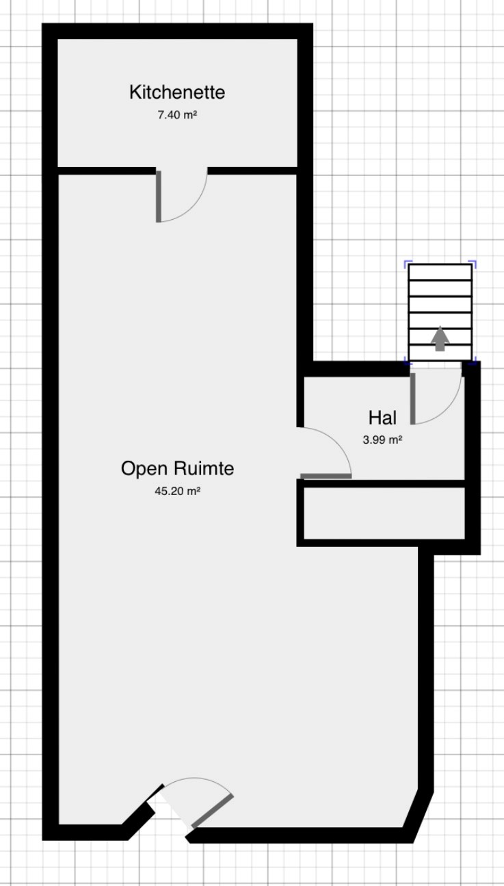 Gelijkvloers: handelsruimte, sas, toilet, kitchenette.