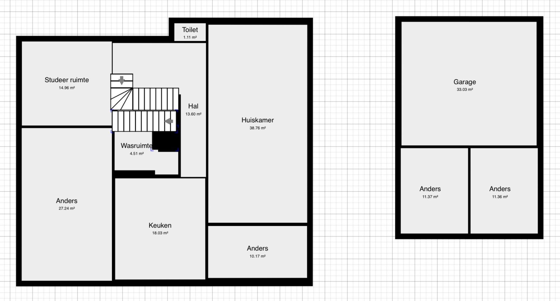 Bijgebouw: 2 paardenstallen, elk ± 11,4 m² en open stallingen (± 35 m²). Op de 1e verdieping bevindt zich een zolderruimte.