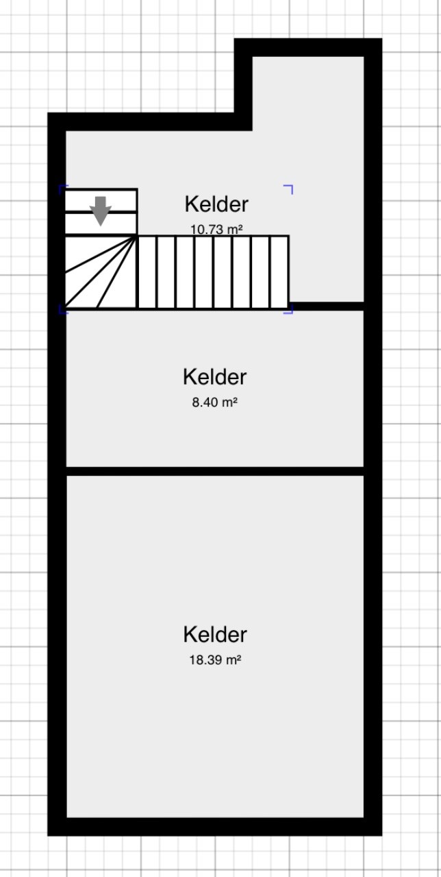 Kelder: voorraadruimte 1 (± 10,7 m²), voorraadruimte 2 (± 18,4 m²), cv-kelder (± 8,4 m²).